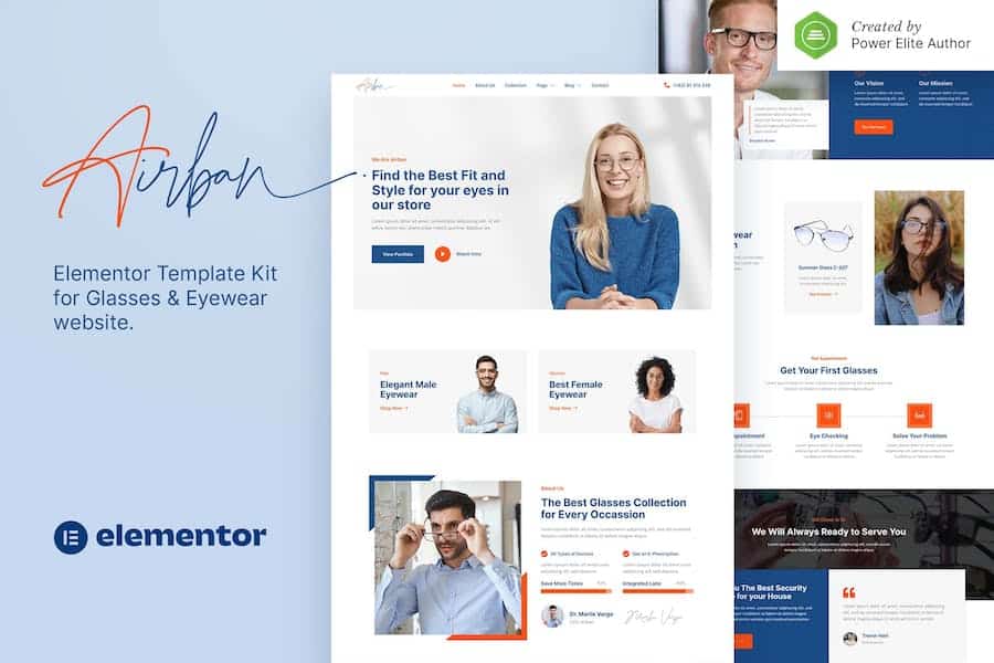 Airban is a modern and clean Elementor Template Kit that is perfect for those who want to create a professional-looking WordPress-based website for Glasses & Eyewear store landing page. This template has a professional design with a 100% responsive layout,is retina-ready,and is very easy to customize because using Elementor so you don’t need a single line of coding!