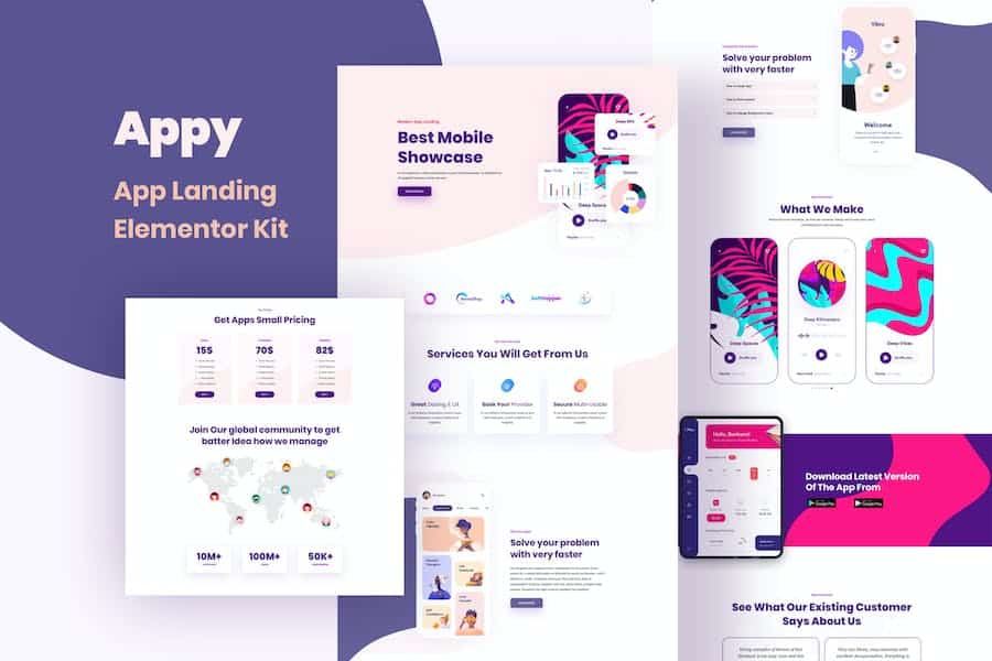 Appy is a modern,clean,stylish Elementor app landing templates kit. This is made with Elementor free version and very easy to understandable kits. Used on modern design trend which helps you make your app page,app landing,app showcase pages. If you want to market your app page or your app sale page then Appy Template kits help you to make your app showcase,app sale or app landing pages. We used the Elementor Free Plugin which is not required to pay any extra amount of money.