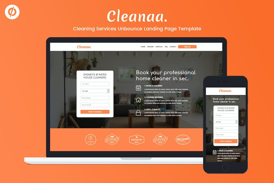Cleanaa is a responsive unbounce landing page template for home cleaning or maid services. Cleanaa is a perfect drag and drop template which is easy to develop with and it has unlimited customization possibilities. It is created with modern vibrant colors and shapes.