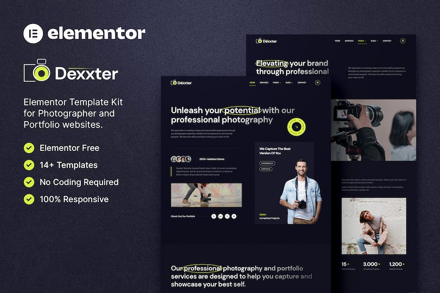 Introducing Dexxter,the sleek and modern Elementor Template Kit perfect fornphotographers,videographers,artists,and other creatives looking to showcasentheir portfolio online. With its stylish and professional design,Dexxternallows you to easily customize your website without any coding knowledge. Then100% responsive layout ensures your website looks great on all devices.
