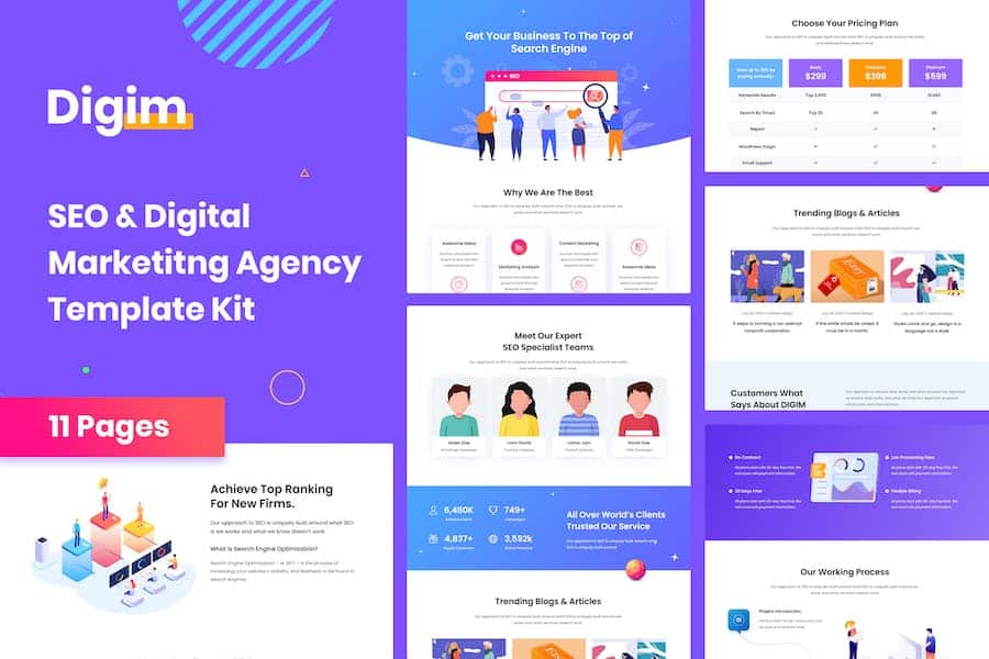 Digim is SEO & Digtal Marketing Templatekit. It’s easy to use,seo friendly & responsive. There are 10 full page templates included within this Templatekit. You can use this kit for building SEO,Agency,SaaS,Startup,Technology,Software,Agency & Digital Agency related sites.