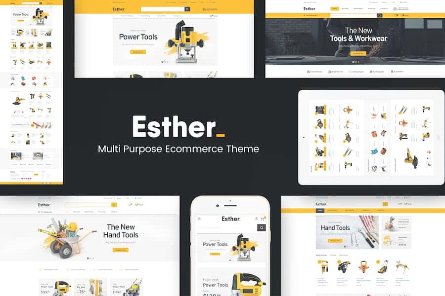 Esther is a clean and responsive Prestashop theme used to sell tools,hand tools,equipment and accessories via a great online store.