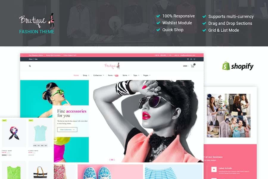 “Fashion Boutique”is a clean,pleasant theme for your Shopify store that stands out of the crowd. This stylish and fashionable Shopify theme ideal for creating a fashion store,gift shop,mobile store,clothing store,any fashion industry related project or any other type of e-store.