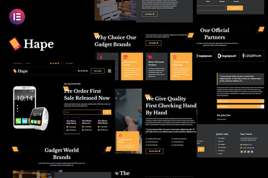 Hape - Gadget Showcase Elementor Pro Template Kit is a collection of layouts for the Elementor page builder WordPress plugin,designed for use with Elementor Pro Version for a clean Design. It works with most themes and is optimized for use with the free Hello Elementor theme.