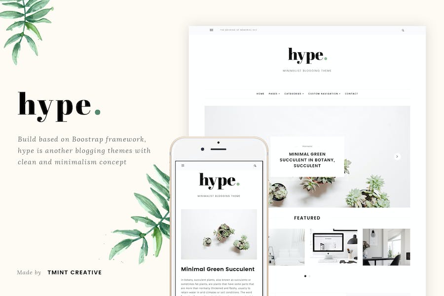 Hype. Build based on Boostrap framework,hype is another blogging themes with clean and minimalism blogging concept. Perfect for building a beautiful creative portfolio / agency website within minutes. This is tumblr themes is perfect for building a beautiful blog especially creative designer and clean enthusiasm within minutes. It includes documentation to guide you with detailed how to . Don’t miss the live preview .