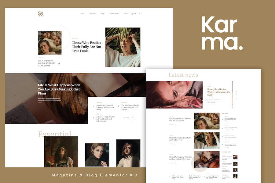Karma is the Blog/Magazine Elementor Template Kit,that perfectly fits for any blogger needs. Karma's clean & balanced layout make it best choice for bloggers. The Kit includes a lot of templates that are easy to edit using Elementor page builder for WordPress and has been optimized for use with the free Hello Elementor theme but may be used with most themes that support Elementor.