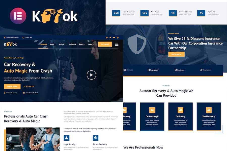 Ketok - Autocar Recovery & Auto Magic Elementor Template Kit is a collection of layouts for the Elementor page builder WordPress plugin,designed for use with Elementor Pro Version for a clean Design. It works with most themes and is optimized for use with the free Hello Elementor theme.
