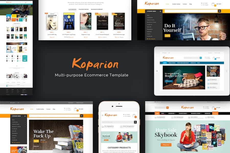 Koparion is a clean responsive Opencart theme suitable for building an online bookstore or an e-book store. This bookstore theme is fully responsive and functions smoothly on any type of devices or screen sizes.