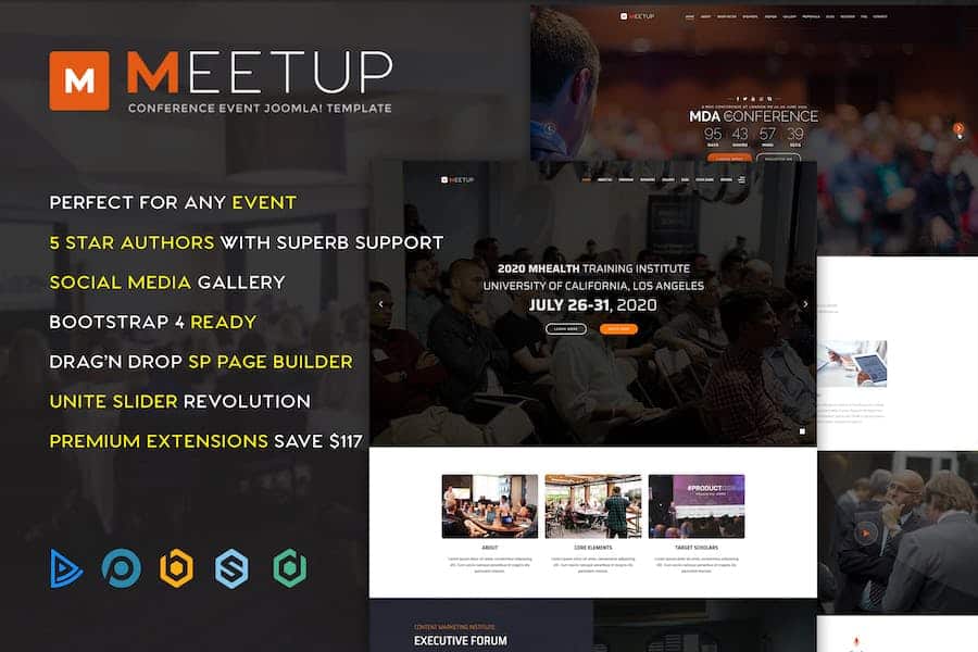 MeetUp Conference Event Joomla template brings us tons of amazing featured sections for Speakers,Event Schedule,FAQ’s,Registration Form and a location map. With many cutting-edge features,Meetup will surely never make you disappointed.nNow,let’s have a look at the key features of this wonderful template.