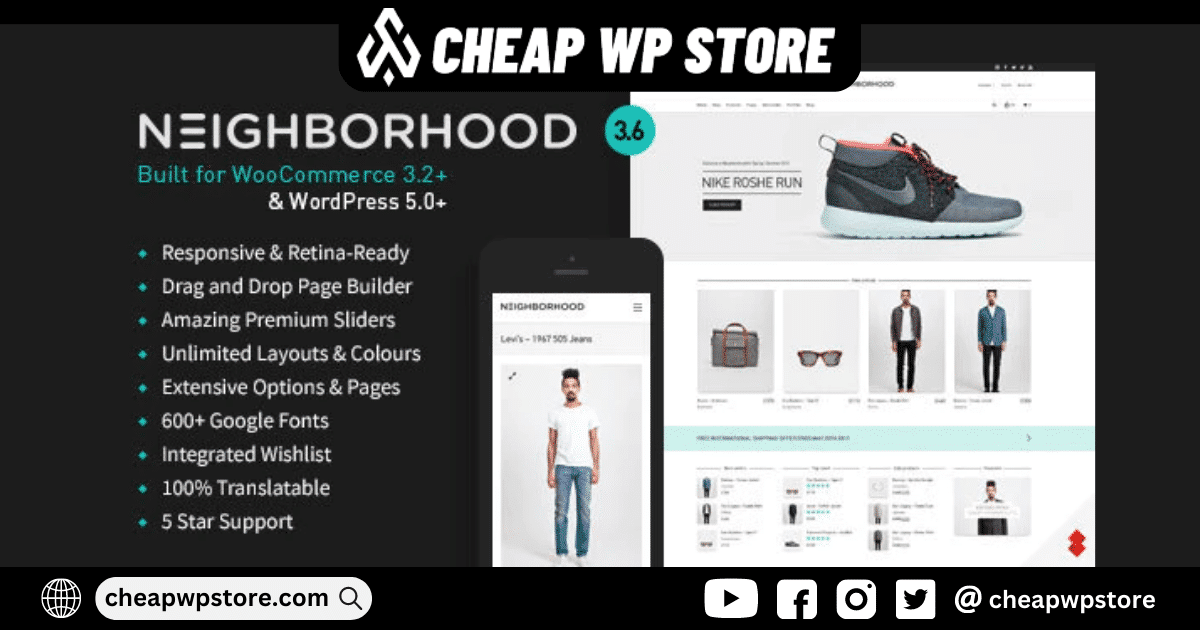 Looking for a powerful,reliable,and cost-effective way to take your website to the next level? Look no further than Neighborhood - Responsive Multi-Purpose Shop Theme,the ultimate solution for anyone looking to boost their online presence and drive more traffic to their site.nnWith Neighborhood - Responsive Multi-Purpose Shop Theme,you'll get access to a wide range of powerful features and tools designed to help you optimize your site for maximum visibility and search engine rankings. Whether you're looking to increase your site's speed and performance,enhance your site's design and functionality,or simply improve your site's overall user experience,Neighborhood - Responsive Multi-Purpose Shop Theme has everything you need to succeed.nnAnd best of all,when you subscribe to our Membership Plans,you'll get access to Neighborhood - Responsive Multi-Purpose Shop Theme and over 1500+ other products for FREE! That's right,for one low weekly/monthly/annually/lifetime price,you'll get unlimited access to all of our plugins and themes without serial codes,including all future releases. Plus,you'll enjoy unlimited domain usage and regular updates as soon as they become available - usually on a daily basis!nnSo why wait? Join the club today and start enjoying all the benefits of our powerful Membership Plans. With Neighborhood - Responsive Multi-Purpose Shop Theme and our other amazing products,you'll have everything you need to take your website to the next level and achieve online success. But don't just take our word for it - read our Terms & Conditions and FAQ before purchase and see for yourself why so many website owners trust us for all their needs!