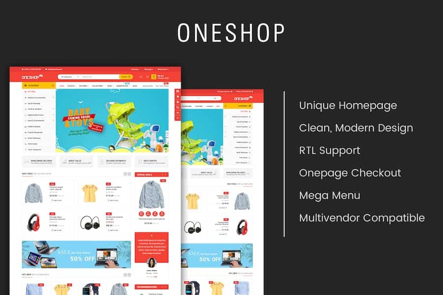 OneShop is the multi-purpose OpenCart theme for any trending Hitech or Fashion store. Supporting the latest version of OpenCart 3.0.x,this theme has full of functioning features of a modern template for any eCommerce website. With an unique homepage,customers easy choose the default design matching with their products with many new features now such as Onepage Checkout,Facebook Messenger livechat,Social Login,Quick Tool & much more. This integration will bring to customer many benefits in experiencing your website,now you totally yourself can create a unique e-commerce website with the So OneShop – as its name.