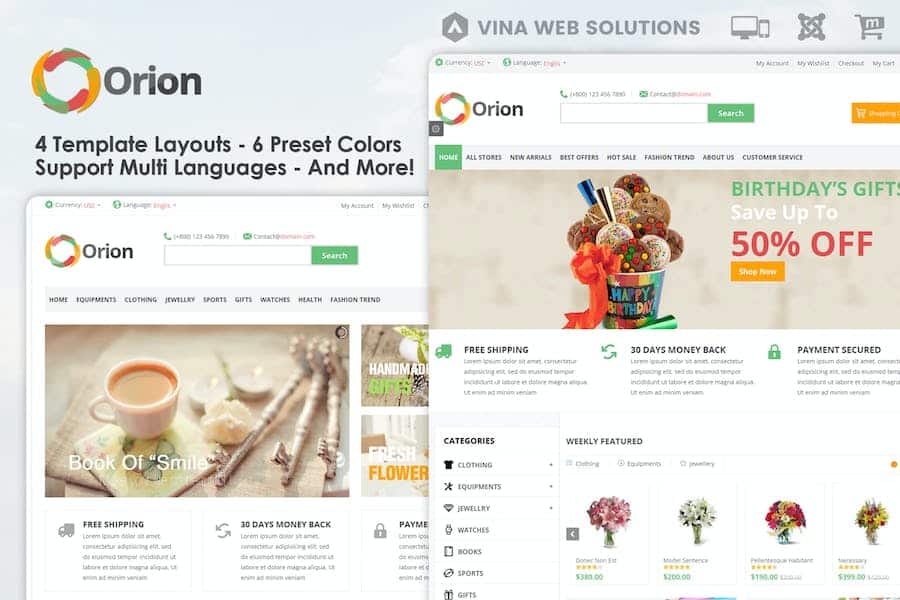 4 Home Page Layout: Vina Orion comes with 4 beautiful home page for online shop,that's easily fits for any kind online shop.