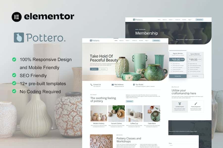 Pottero is Elementor Template Kit for Pottery & Ceramics Studio website. This template kit is perfect for company that offering private class for Pottery Classes and Pottery Workshops. You can easily customize it and even change it to any classes or workshop. It has 12+ pre-built templates with cool,clean,modern and professional style.