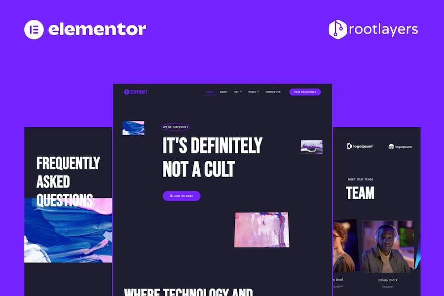 SuperNFT is an Elementor Full Site Kit for quickly and easily creating a modern full Elementor Pro website for your business. It is optimized for the free Hello Elementor theme but can be used with most themes that support the Elementor page builder. Customize fonts and colors via the built in Elementor Theme Styles controls and load in your photos,logos and content using the visual drag and drop builder.