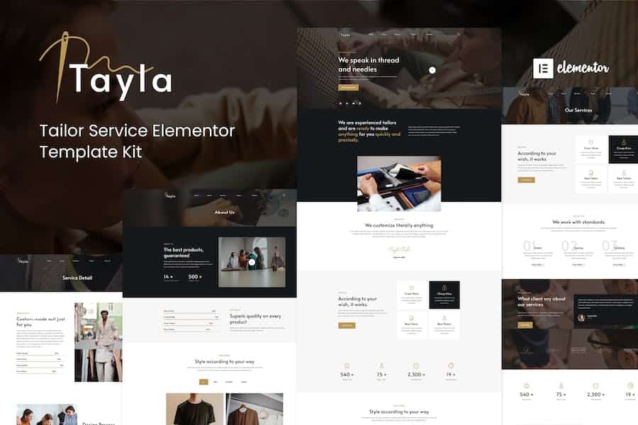 Tayla - Tailor Service Elementor Template Kit is an Elementor Template Kit for quickly and easily creating websites for your business using the Elementor Page Builder plugin for WordPress. This kit has been optimized for use with the free Hello Elementor theme but may be used with most themes that support Elementor. Tayla has a simple,modern and clean design with a 100% responsive layout,and very easy to customize because using Elementor so you don’t need a single line of coding!