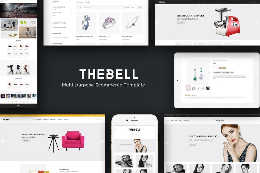 Thebell is a perfect creative multistore Magento 2 Theme with CSS3 and Bootstrap 3 styles. There are 4 stores in this theme: kitchen,shoes,furniture and jewelry. Thebell is also developed in compliance with the W3C standards.