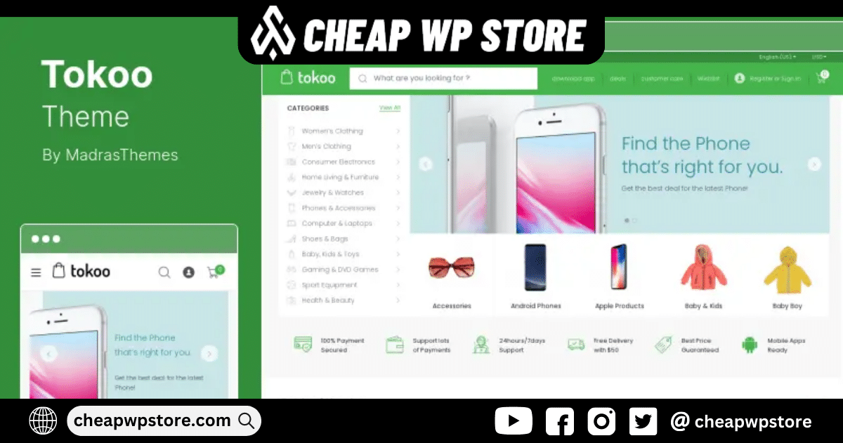 Looking for a powerful,reliable,and cost-effective way to take your website to the next level? Look no further than Tokoo - Electronics Store WooCommerce Theme - for Affiliates,Dropship and Multi-vendor Websites,the ultimate solution for anyone looking to boost their online presence and drive more traffic to their site.nnWith Tokoo - Electronics Store WooCommerce Theme - for Affiliates,Dropship and Multi-vendor Websites,you'll get access to a wide range of powerful features and tools designed to help you optimize your site for maximum visibility and search engine rankings. Whether you're looking to increase your site's speed and performance,enhance your site's design and functionality,or simply improve your site's overall user experience,Tokoo - Electronics Store WooCommerce Theme - for Affiliates,Dropship and Multi-vendor Websites has everything you need to succeed.nnAnd best of all,when you subscribe to our Membership Plans,you'll get access to Tokoo - Electronics Store WooCommerce Theme - for Affiliates,Dropship and Multi-vendor Websites and over 1500+ other products for FREE! That's right,for one low weekly/monthly/annually/lifetime price,you'll get unlimited access to all of our plugins and themes without serial codes,including all future releases. Plus,you'll enjoy unlimited domain usage and regular updates as soon as they become available - usually on a daily basis!nnSo why wait? Join the club today and start enjoying all the benefits of our powerful Membership Plans. With Tokoo - Electronics Store WooCommerce Theme - for Affiliates,Dropship and Multi-vendor Websites and our other amazing products,you'll have everything you need to take your website to the next level and achieve online success. But don't just take our word for it - read our Terms & Conditions and FAQ before purchase and see for yourself why so many website owners trust us for all their needs!