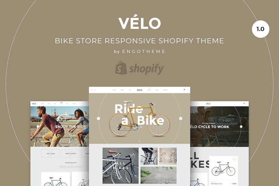 EngoTheme proudly presents Velo,a brand new Bike Store Responsive Shopify Theme specially designed for selling bicycles. But please do not let the name Velo – Bicycle limit you,the theme can also be ideal for fashion,watches,jewelry and so many more. Velo is 100% responsive with a clean,urban,somehow vintage and simple yet still very creative look that might please the eye of our most demanding clients.