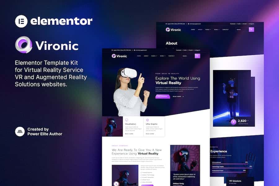 Vironic is a modern and clean Elementor Template Kit that is perfect for thosenwho want to create a professional-looking website for Virtual RealitynServices,VR,Augmented Reality Solutions,and also fit for Creative DigitalnAgency and any related business. This template is compatible with WooCommerce,n100% responsive layout,and is very easy to customize because using Elementornso you don’t need a single line of coding!