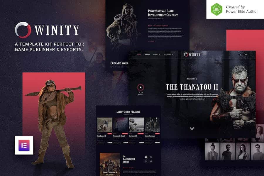 Winity is a modern and clean Elementor Template Kit that is perfect for thosenwho want to create a professional-looking WordPress-based for Game Publisher,neSports Tournament,Game Developer,Game Database,Game Review,Game Streamer,nor Game Studio website. This template has a professional design with a 100%nresponsive layout,retina-ready,and very easy to customize because usingnElementor,so you don’t need a single line of coding!