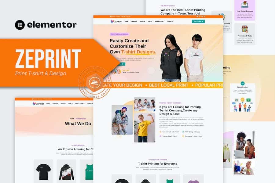 Zeprint - Print T-shirt & Design Elementor Template Kit. Zeprint is has 13 pre-built templates with fully responsive,modern,clean design and customizable theme. Zeprint can be used for print,T-shirt,design,agency. Zeprint as well as layouts for corporate to show their cool,modern and amazing project.